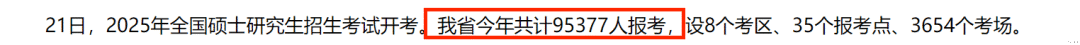 2025年全国硕士研究生招生考试,我省今年共计95377人报考。