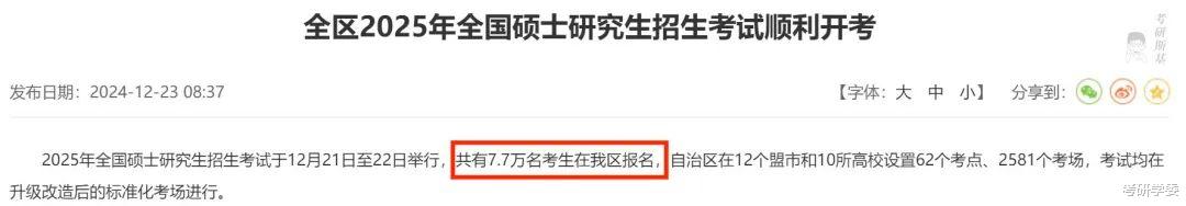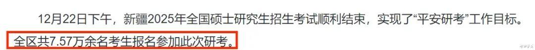 今年,新疆维吾尔族自治区全区共计7.57万余名考生报名参加此次研考。