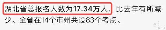 湖北省总报名人数为17.34万人,比去年有所减少。