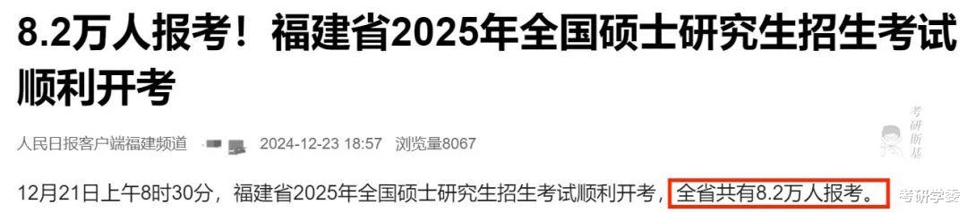 福建省2025年全国硕士研究生招生考试,全省共有8.2万人报考。