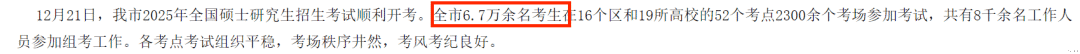 天津市2025年研招考试共计6.7万余名考生参加考试。