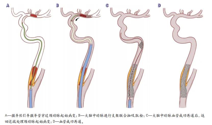 策略:首选支架取栓或支架联合抽吸,若再通后血流无法维持,可考虑补救性球囊扩张或支架植入。静脉应用替罗非班可能改善预后。