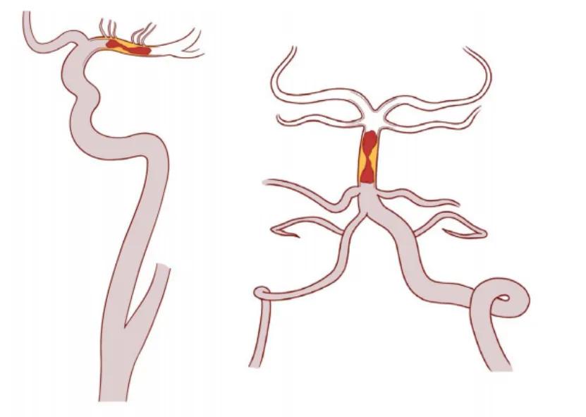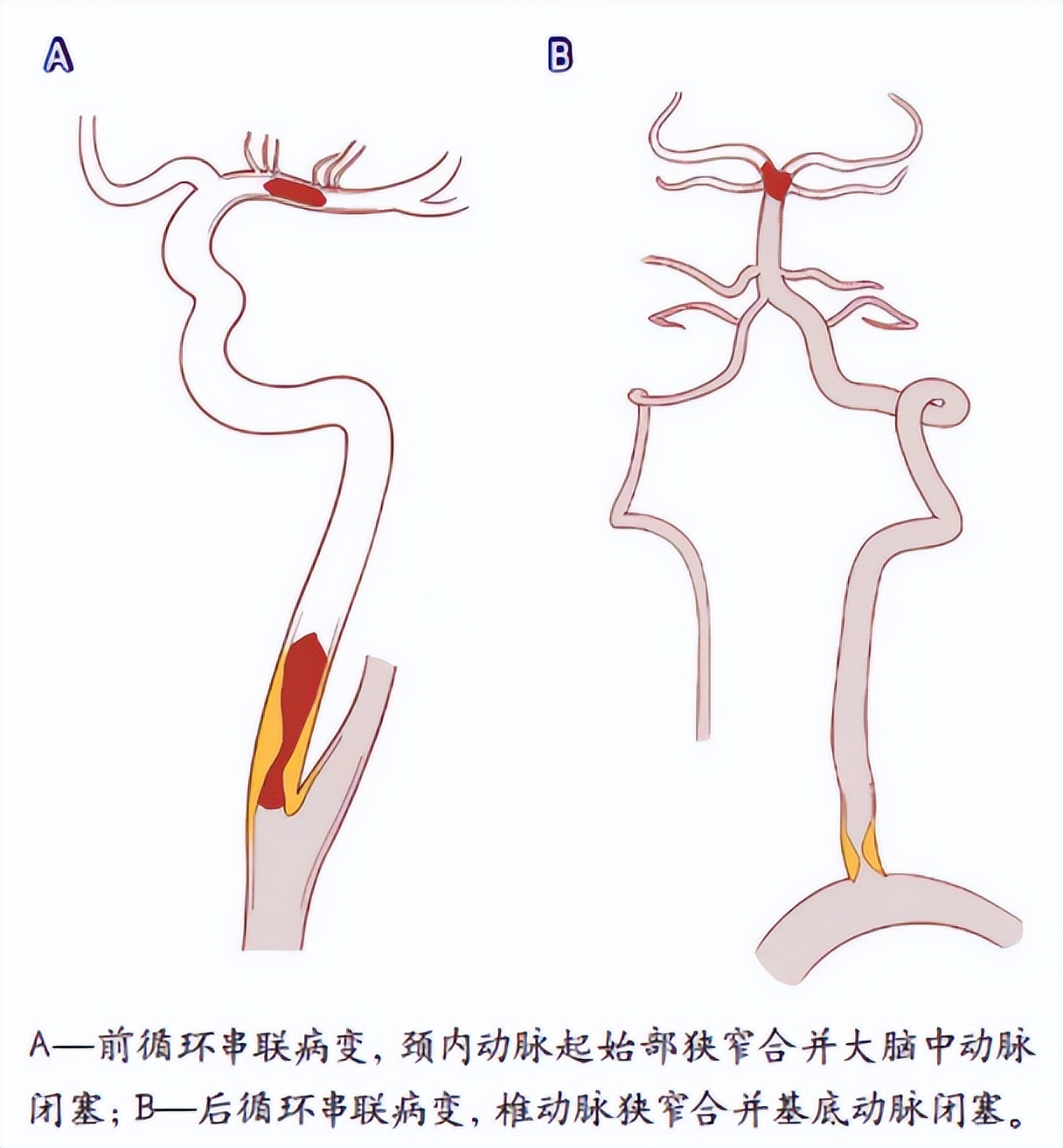 图1 颅内动脉粥样硬化性狭窄所致大血管闭塞示意图