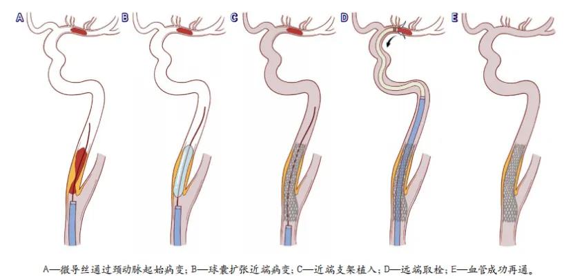 前循环:无论何种顺序,若远端开通后近端血流不能维持或狭窄>70%,可急诊植入颈动脉支架。