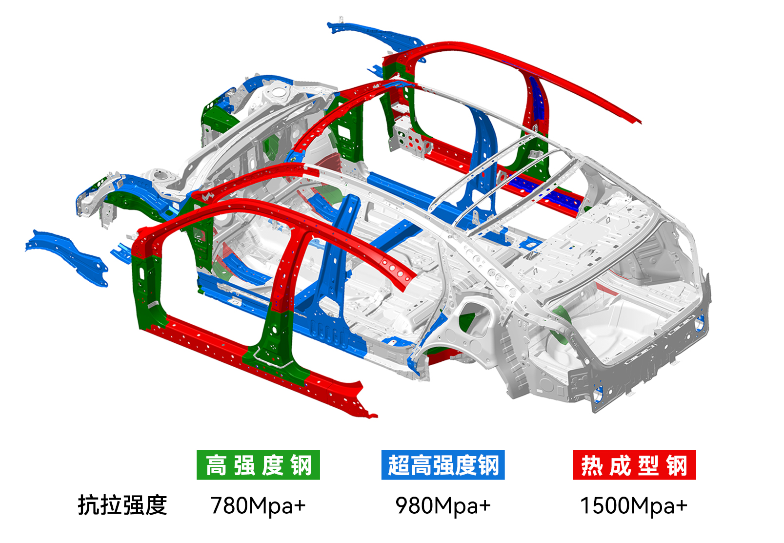 车身用料是隐形保障:框架超60%为高强度钢与热成型钢,A柱、B柱等关键部位用抗拉强度1500MPa以上的热成型钢,每平方厘米承1.5吨力,既能提升安全,又能抵抗改装和激烈驾驶时的形变,对比同级别用普通低碳钢的做法,更让用户安心。