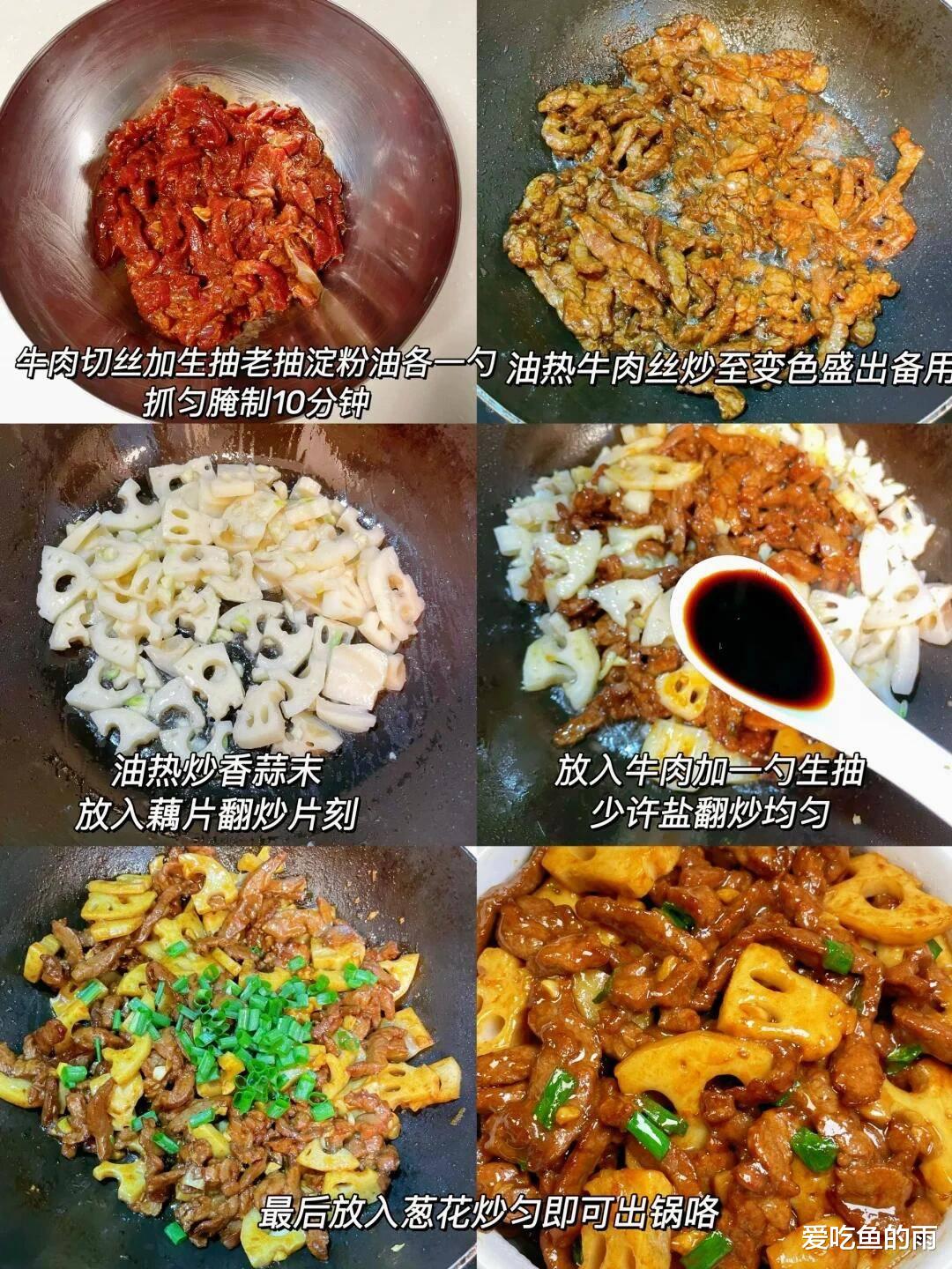 现在超市有切好的牛肉片、泡好的莲藕,但我还是爱自己动手。切牛肉时想起妈妈教我“逆着纹路切”,切莲藕时想起她泡盐水的样子,炒菜时仿佛能听到她在旁边念叨“火要大”。这道菜不只是道菜,更是妈妈的味道,是家常的温暖。脆藕的清甜、嫩牛的鲜香,裹着米饭下肚,暖的是胃,甜的是心。或许美食的意义就在这儿——简单的食材,用心的手法,就能让平凡的日子,变得像莲藕炒牛肉一样,脆嫩鲜甜,暖得入心。这盘菜里藏着的,是中国人对“家常”最温柔的诠释,是亲情最具体的表达。