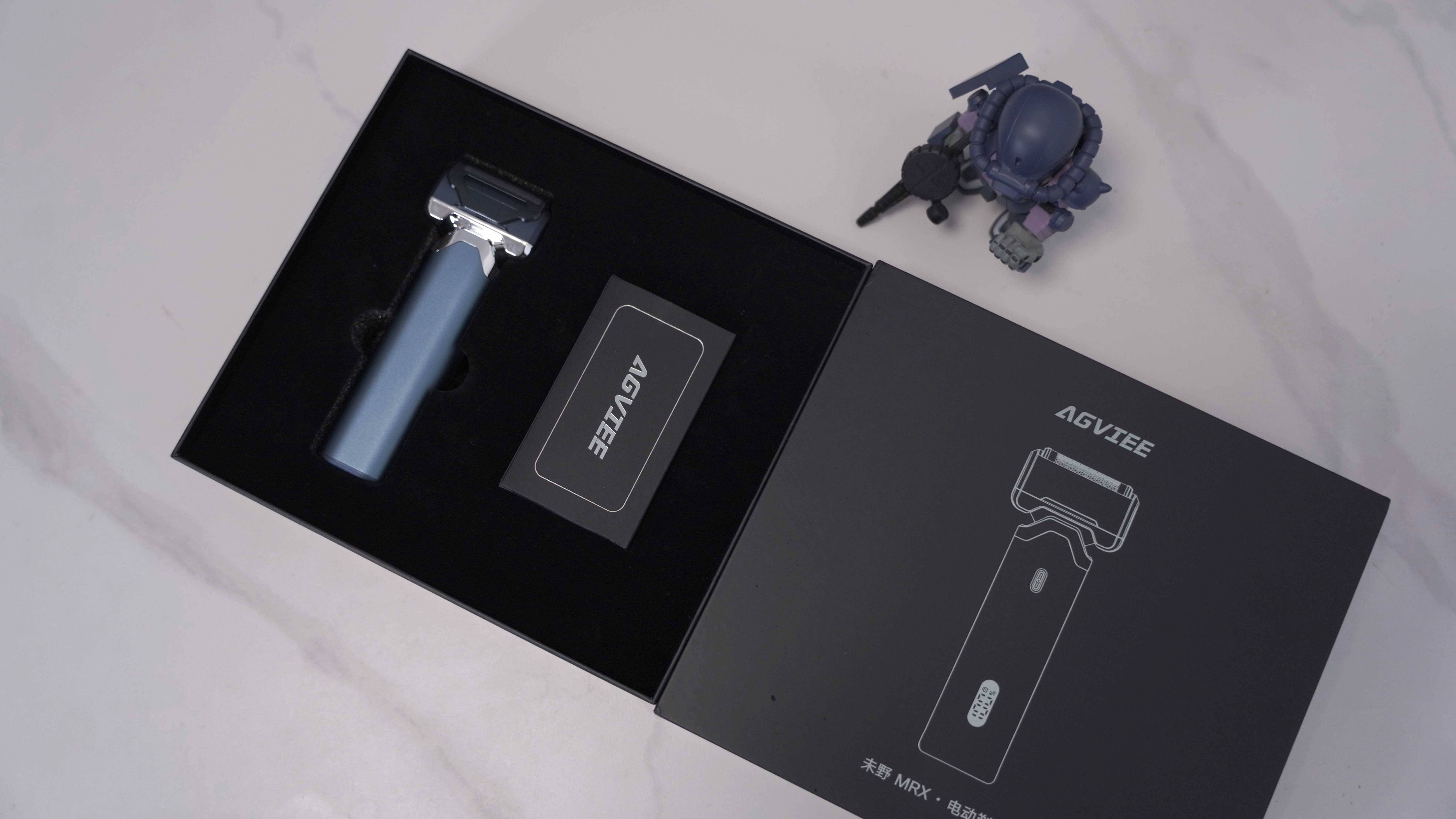 未野MRX电动剃须刀的外包装为深邃黑色简约包装,看着质感不错,不论是送队友还是送长辈,都是拿得出手的。