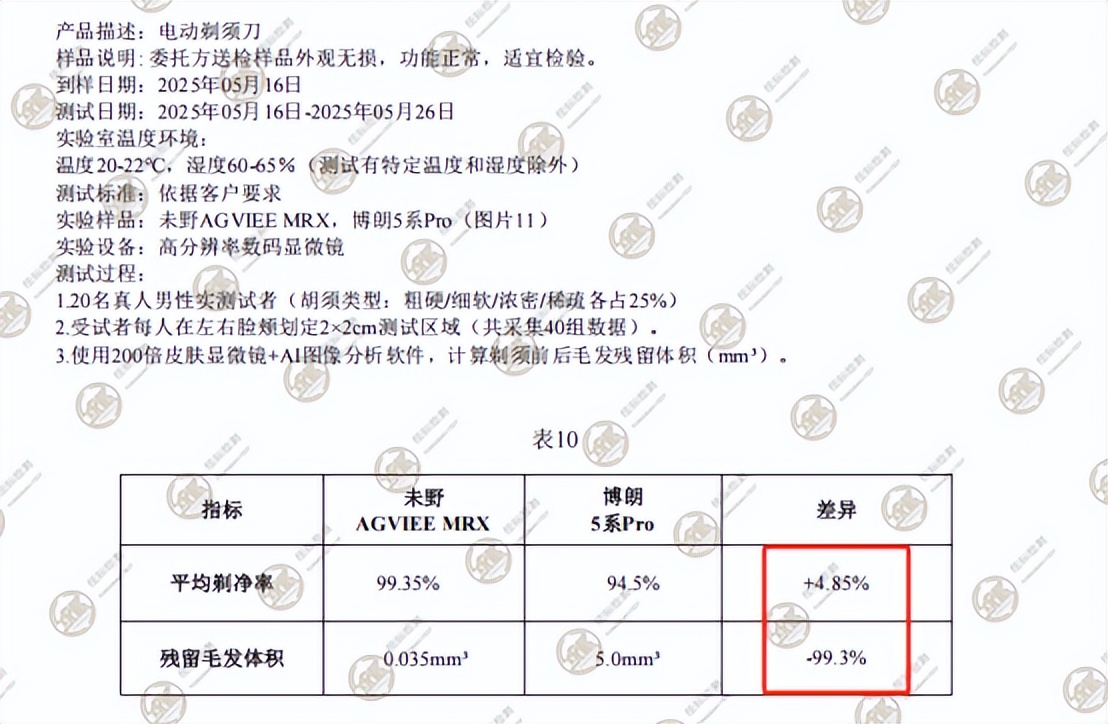 专业机构检测发现未野剃须刀剃净率高于竞品99.3%