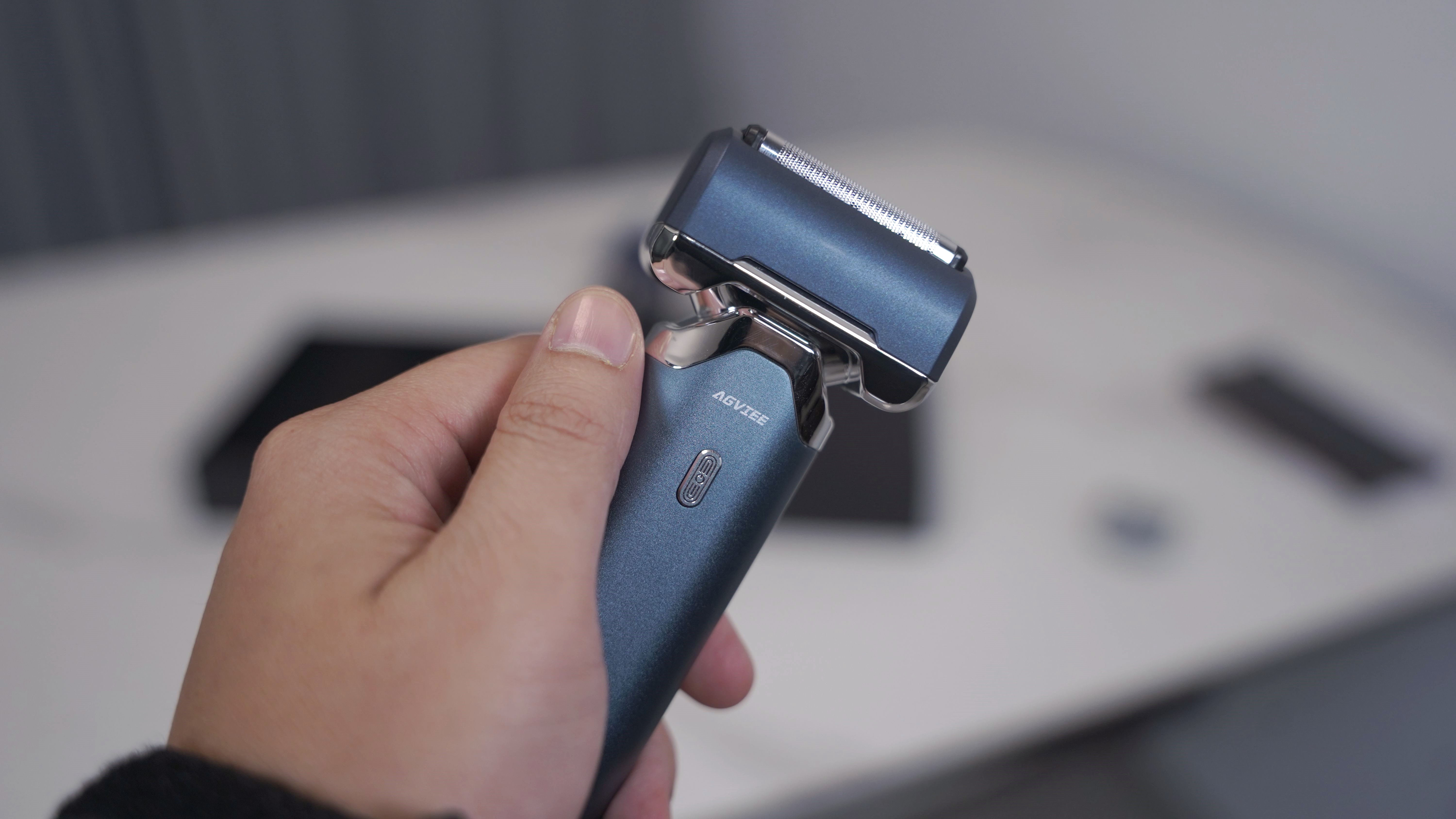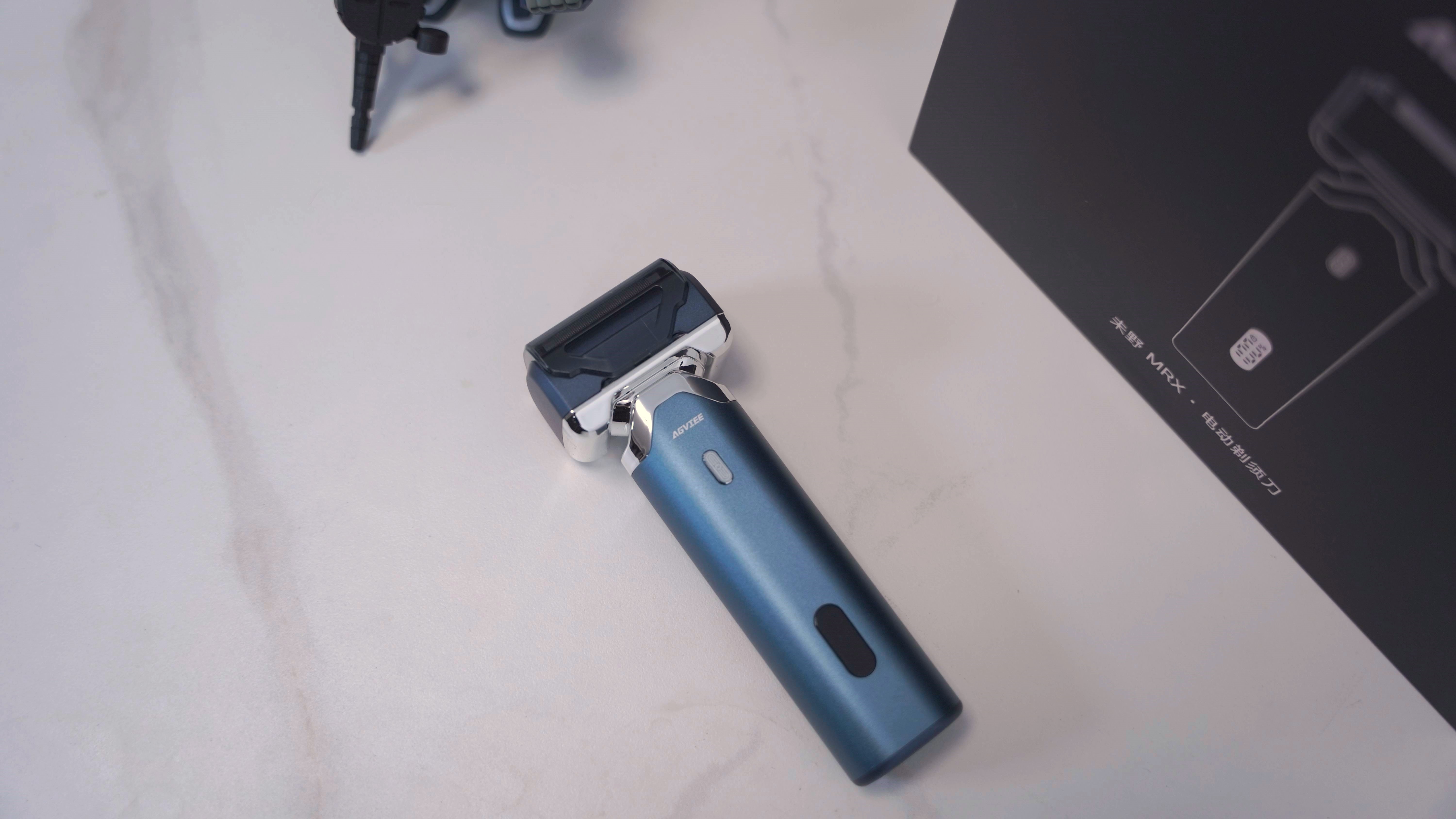 百元级的剃须刀往往都是使用了大面积的塑料配件,而未野MRX则采用全铝机身,蓝色磨砂漆面,不但耐指纹,也有很棒的握感,湿剃不易打滑。到头过度处有镀铬装饰点缀,整体颜值很高,让人看着完全不像是百元级的产品。