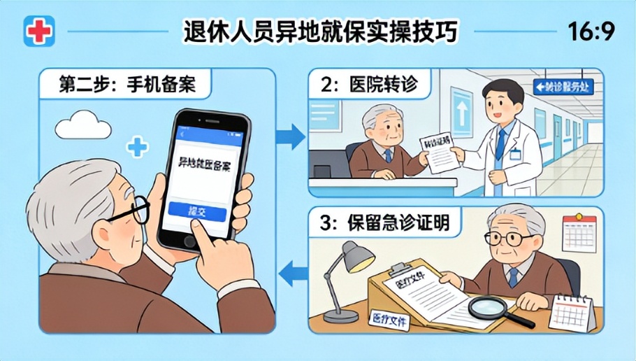 四、退休人员实操提醒:3招少花冤枉钱针对此次新政,退休人员异地就医可记住这3个实用技巧,避免多花钱、跑弯路:
