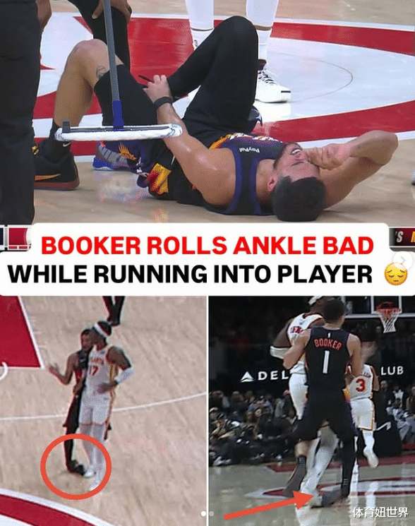 其中身为球队一哥的布克,更是在手感火烫,此战上场不到29分钟就狂轰31分情况下,因为没看路,导致踩到对手造成右脚踝大扭的离奇受伤方式退场,让太阳战力面临危机。