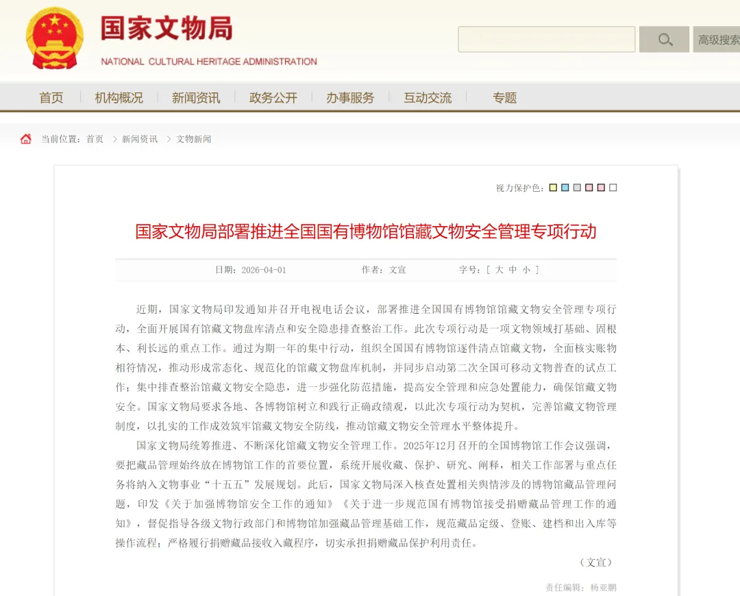 最近,国家文物局的一则通知在文博圈和收藏圈都引起了不小的关注——全国国有博物馆要开展为期一年的馆藏文物安全管理专项行动,逐件清点文物,全面盘库,排查安全隐患。