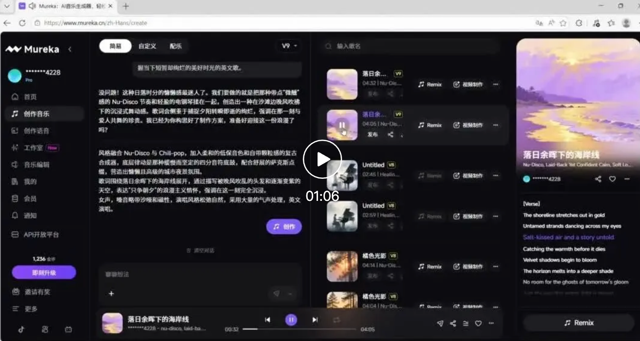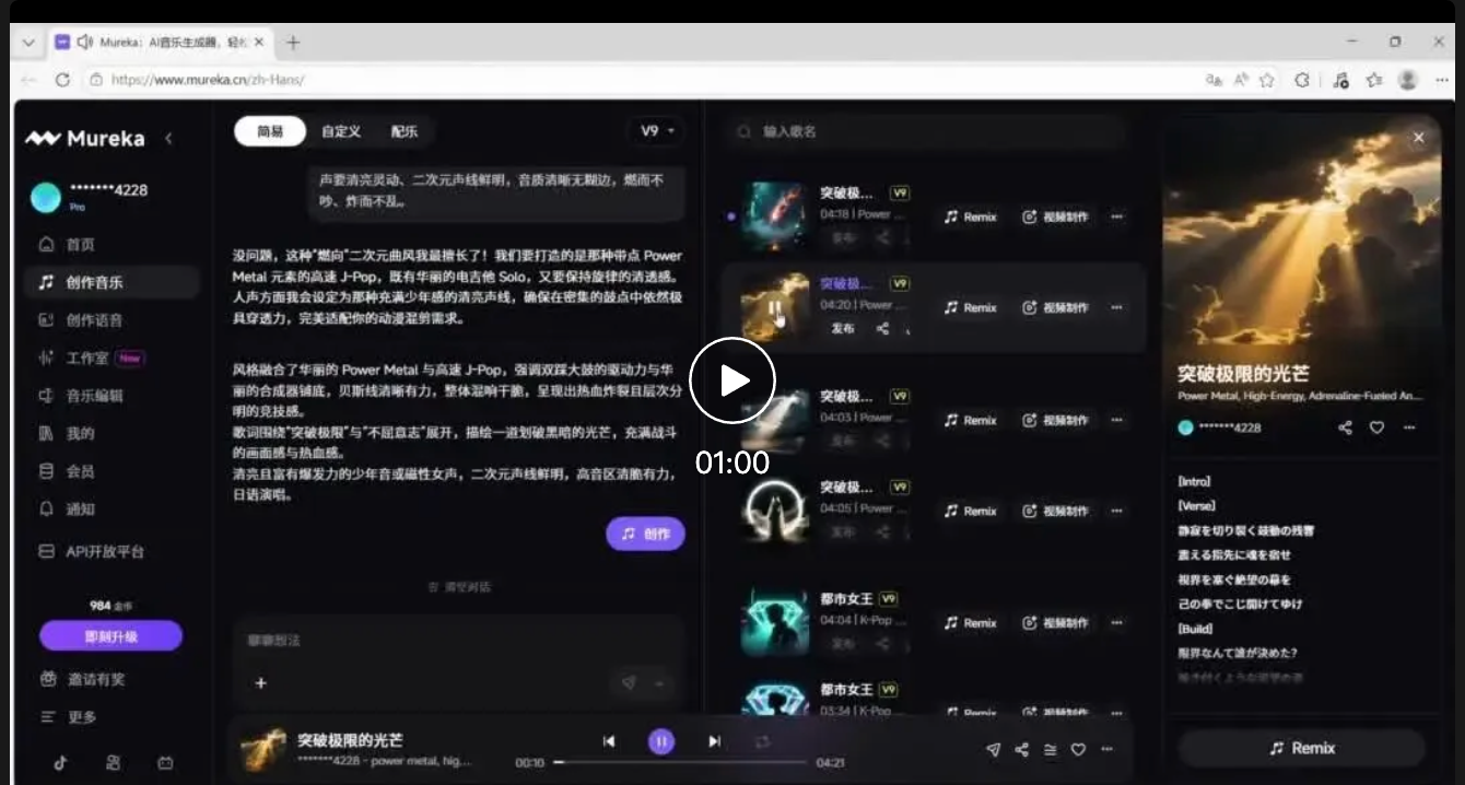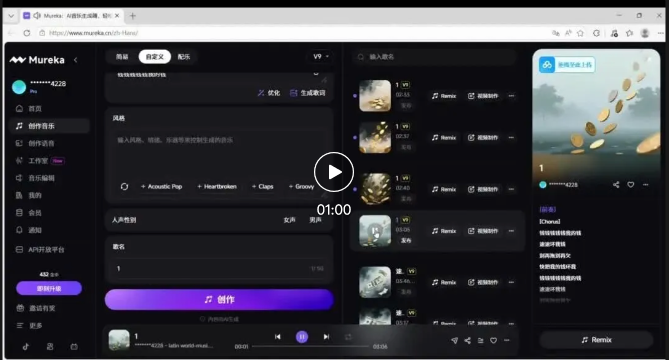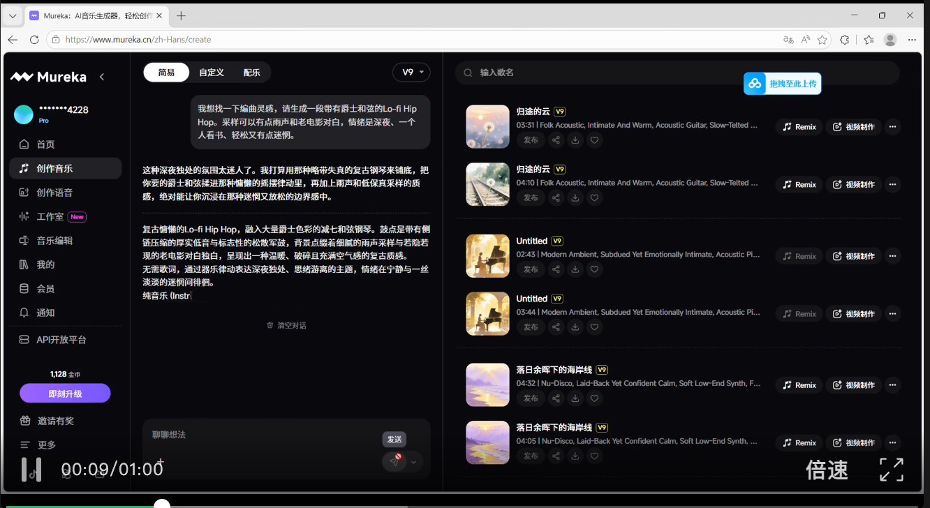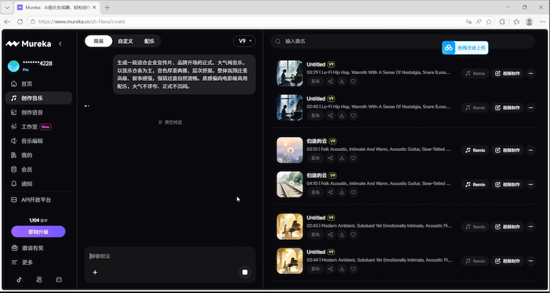 但今年,事情好像不一样了,我有了AI音乐搭子,Mureka V9。