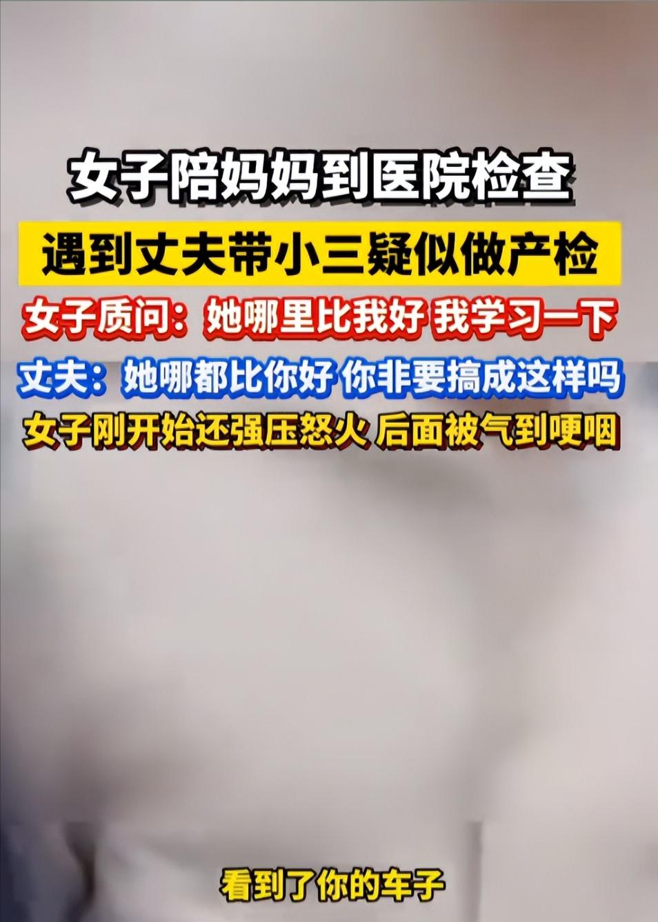 当时医院停车场人来人往的,到处都是拎着检查单、推着轮椅的人,李女士还帮妈妈拎着刚拿的药袋,一开始还以为自己看错了,毕竟老公前一天还说要去外地出差,怎么会出现在这儿?