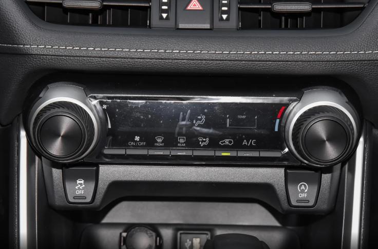 内饰方面,丰田RAV4荣放采用了相对简洁的丰田家族化内饰布局,经典的阶梯式仪表台设计横贯前排座舱,细节融入做工细腻的材质进行衔接,另配以细密的缝线工艺进行装饰,呈现出较强的层次感。在按键布局方面,中控屏下方保留了操作直观的空调实体按键及旋钮,驾驶时盲操也很轻松。车机配置了10.25英寸中控屏,虽然屏幕UI界面的易读性还不错,但车机功能较少,仅配有蓝牙电话、HUAWEI HiCar/CarLife/CarPlay车机互联等功能,在使用体验方面更像是一个单机多媒体播放器,车机智能化和功能性都非常依赖手机互联。