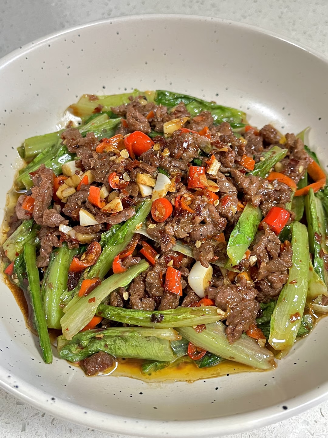 家人们谁懂啊!那天我在朋友家蹭饭,吃到一道油麦菜炒牛肉,第一口就被狠狠拿捏住了。香香辣辣的味道直往鼻子里钻,清爽的口感又中和了辣味,一点都不腻。牛肉鲜嫩多汁,油麦菜脆生生带着蔬菜的清甜,就着这菜,我直接炫了两大碗米饭!回家后我立马研究做法,现在就把这道“下饭神器”的简单做法分享给你们。