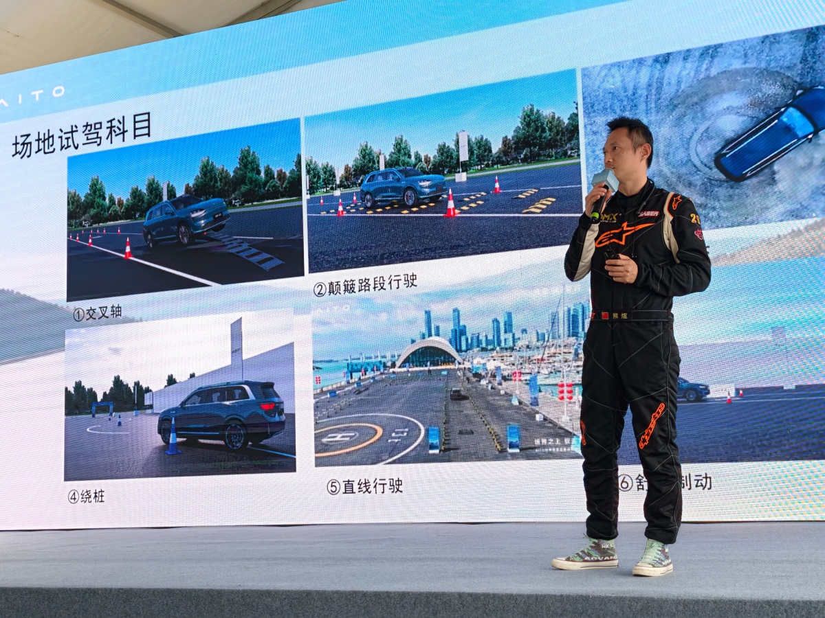在场地道具试驾环节,交叉轴项目中,问界M9搭载的途灵智能底盘通过道路预瞄系统提前识别颠簸路面,主动调节悬架阻尼,车身姿态始终保持平稳,无明显晃动;百米加速与急速制动测试中,双电机四驱系统爆发的强劲扭矩与电液制动的线性反馈相得益彰,M9的4.9秒破百实力在直线加速区毫无保留地释放,而制动时的俯仰抑制则体现出底盘调校的德系厚重感。