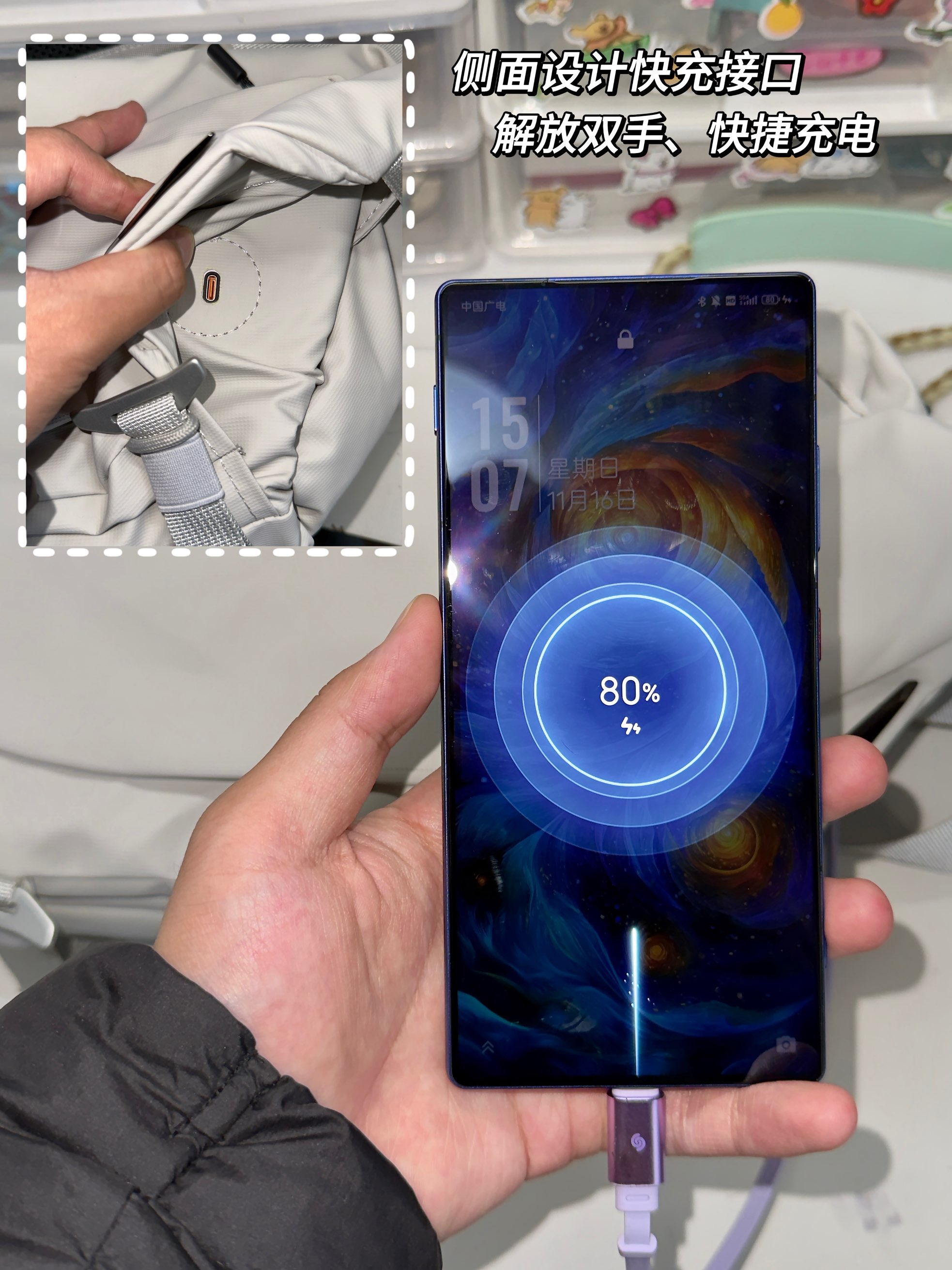 轻量化方面,极星Pro也是做的很不错的。首先,包包本身就十分就十分轻。其次,还配备了双向快速调节扣和自研合金插口,舒适性和佩戴便捷性都是没有问题的。