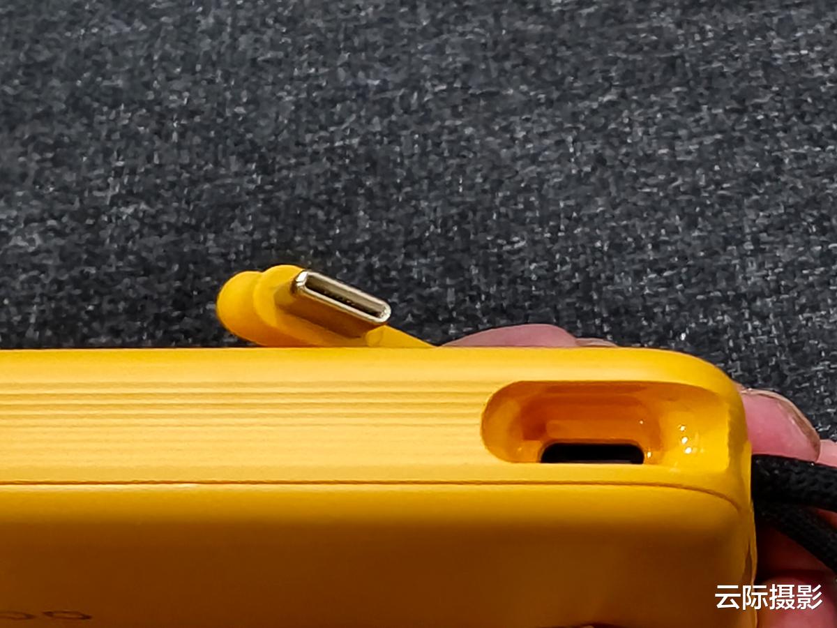 再看充电宝的接口和自带线部分。配备的L型快充接口让边充电和边玩手机成为可能。其最高支持33W的快充功率,能够在短时间内为手机快速补充电量。