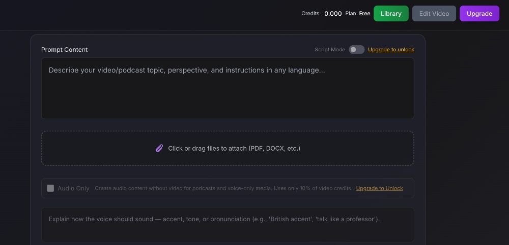 智东西也上手体验了一下,Golpo AI平台免费模式只能生成一个1分钟黑板画模式的DEMO,有画面、人声配音和背景音乐。其中,人声可以选择女声或者男声,背景音乐也可以选择激昂、灵感、纪录片等不同风格。