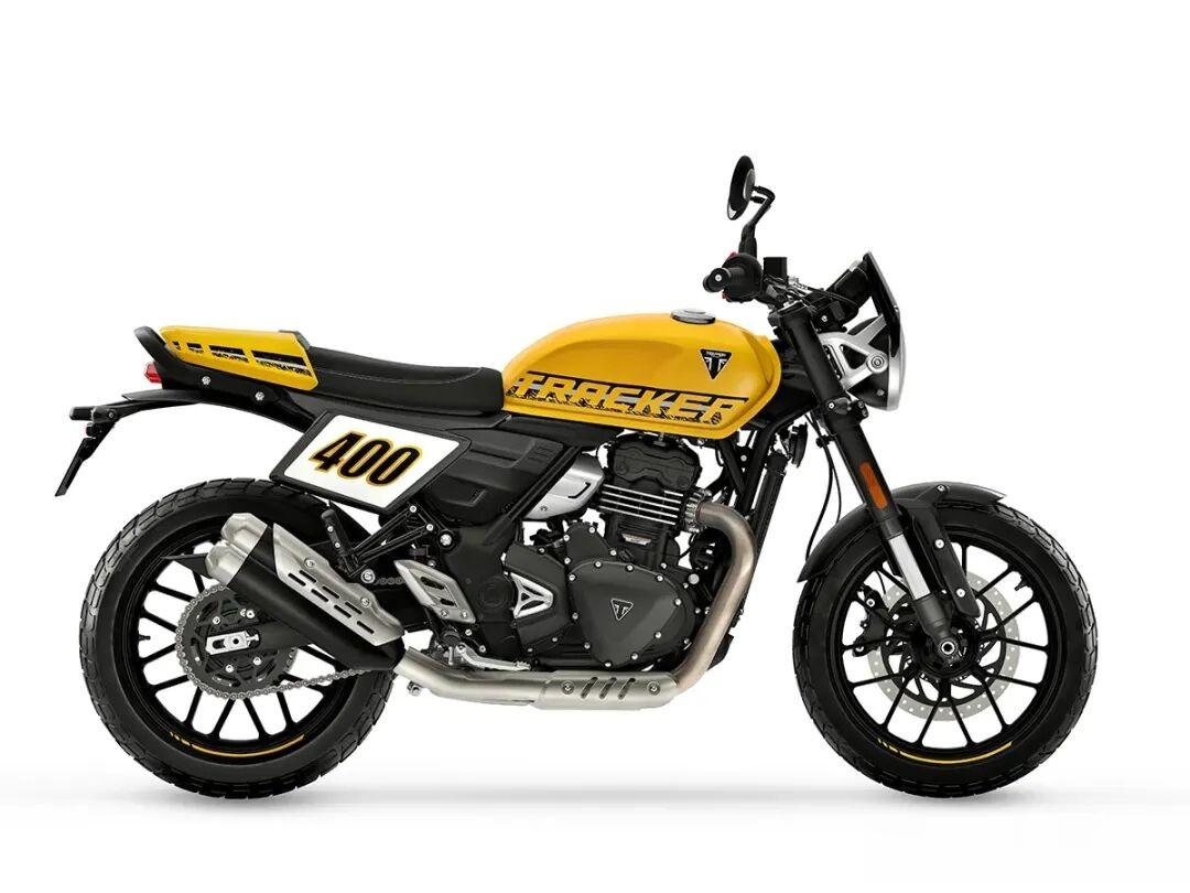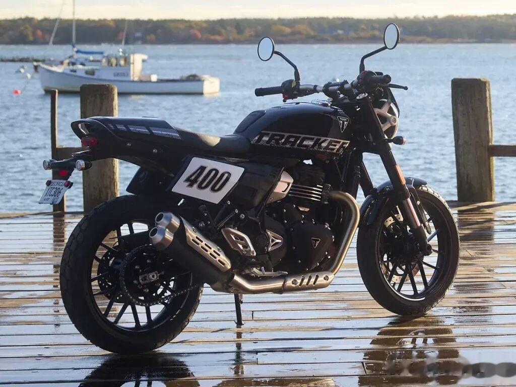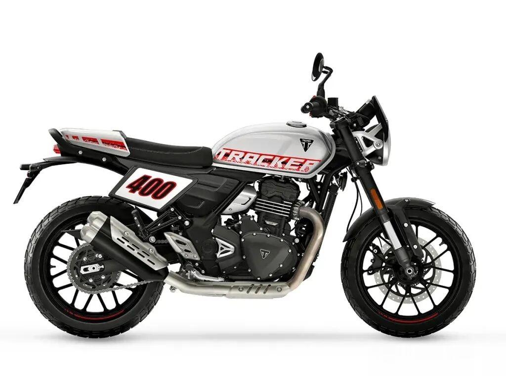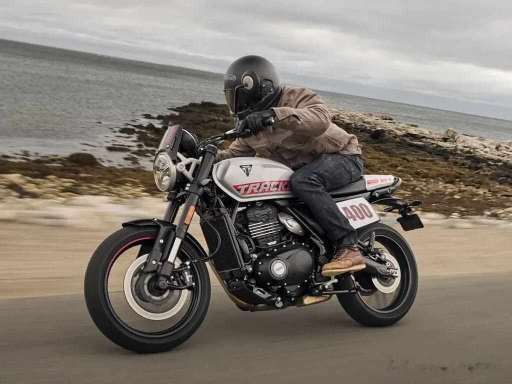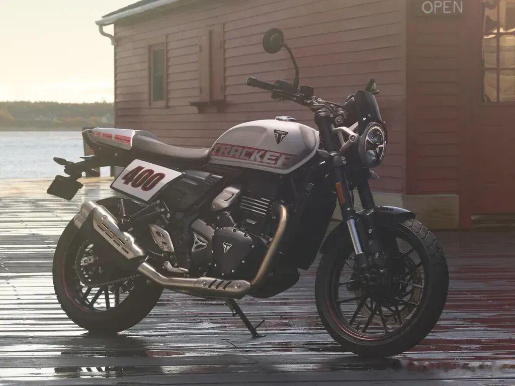 Tracker 400保留经典Triumh设计元素与标志性引擎造型,展现现代经典质感。为了呈现Flat Track特有的直立上身、手肘外张的骑姿,故比Speed 400车把宽23mm、低134mm,脚踏后移86mm、上移27mm,提供更动感、极具侵略的骑乘姿态。
