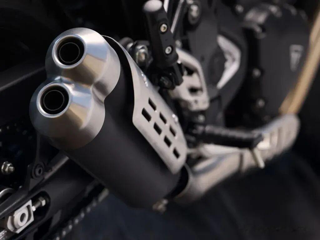 外观细节充满惊喜,如:具备凹槽设计以方便膝盖夹持的Flat Track油箱,与小风镜、及同色系尾部整流罩展现完美和谐感。新设计双辐条轮毂搭配倍耐力MT60 RS轮胎,兼顾优异的越野稳定性与操控。引擎外观则采用Triumph Modern Classic系列共通的粉体涂装引擎外盖,以及切削加工的气缸头散热鳍片,打造出具指标性的视觉质感。前圆形LED头灯、车尾线条流畅的后双出上置式排气管,处处展现Triumph DNA。