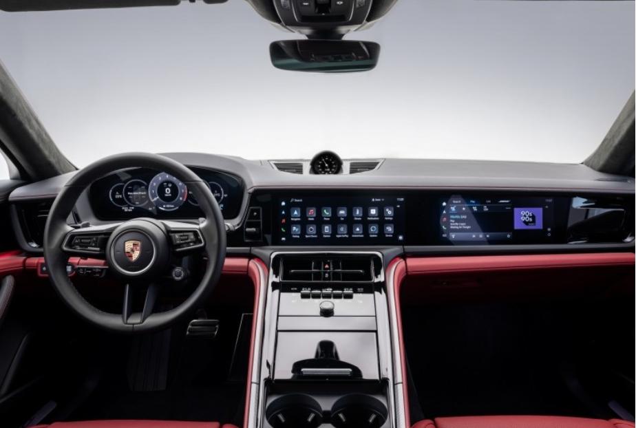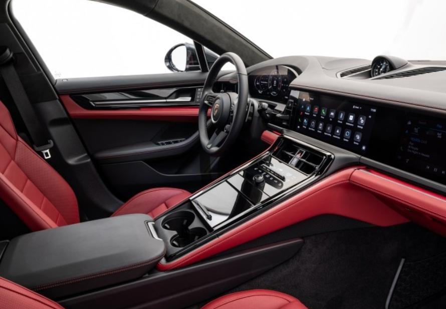 走进车内,新车搭载12.6英寸曲面且独立式设计全数位液晶仪表,配备保时捷家族式5环表界面,并且可以依据需求将驾驶模式分成三个区域。值得一提的是,新车还在于中央鞍座上采用斜坡式的设计,并且将电子排档座移到中控屏侧方,同时下方还配置无格栅的空调出风口,保留一定的物理按键,方便盲操;同时首次配置贯穿式的氛围灯,并且副驾位首次配备触控屏幕,提升用车驾乘体验。