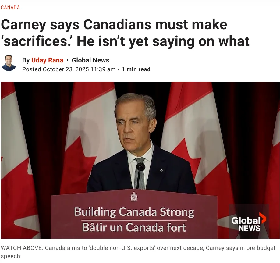 卡尼今天再次强调表示,加拿大人需要在联邦预算出台前做好“牺牲”的准备。