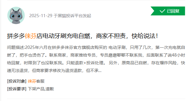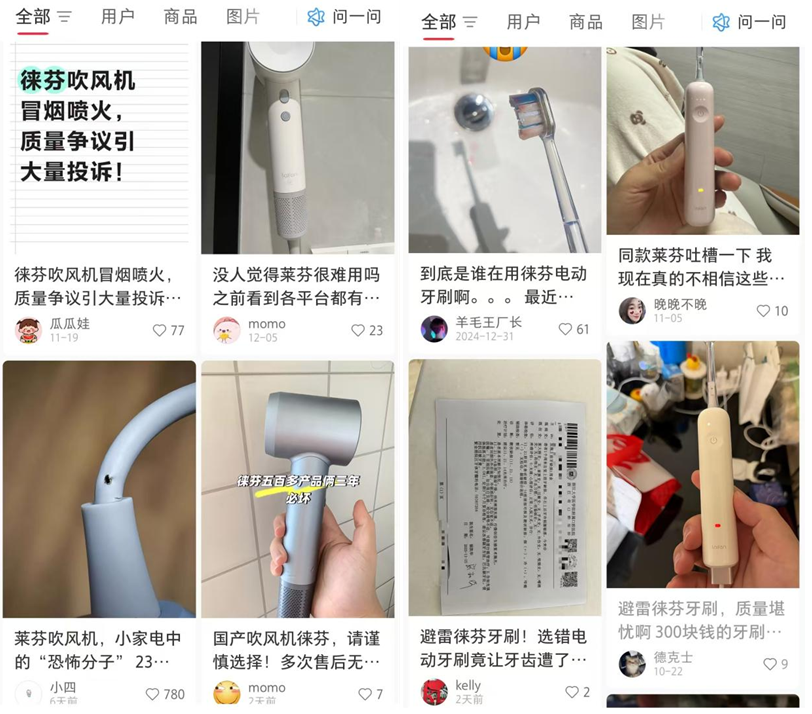 最早的问题出现在产品本身,电动牙刷“打牙”、吹风机“冒火”等质量问题的曝光,用户的第一反应是“你的东西不好用、质量有问题。”这是最基础层面的信任动摇,但还不是致命的。任何品牌都可能出现品控问题,只要处理得当,仍可挽回。