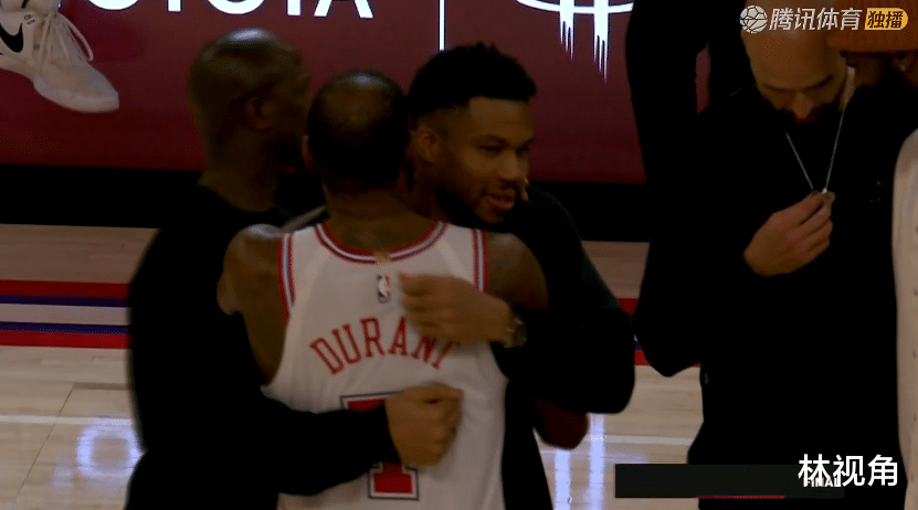 一旁字母哥走过来,和阿杜拥抱致意,之后字母哥哥继续拉着阿杜说个不停,这家伙真能侃大山啊,不行就拉着弟弟一起来火箭吧。