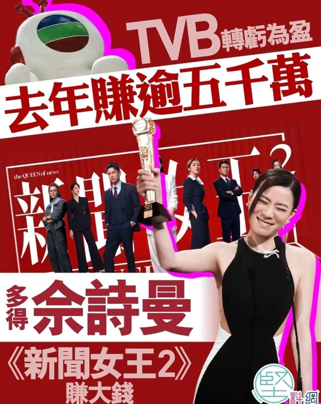 根据TVB于2026年2月发布的业绩预告,公司预计2025财年净利润将超过5000万港元,一举扭转2024年亏损4.91亿港元的颓势。这是自2018年以来,TVB首次实现全年盈利。而这场“翻身仗”的最大功臣,正是2025年11月引爆全网的现象级剧集——《新闻女王2》。
