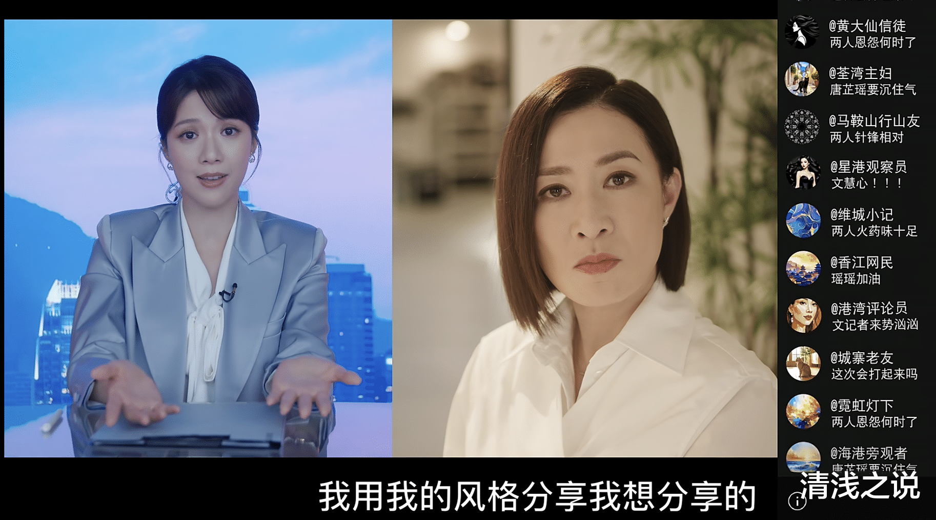被SNK开除后的唐芷瑶转战金融界,反倒凭借专业知识脱颖而出成为轮后。小有名气的她没少在直播间对文慧心指桑骂槐、冷嘲热讽。比如古肇华推出AI主播后,她在大夸AI主播这个创意时就讽刺文慧心,说某知名主播整天搞办公室政治,高调辞职,又高调复出,相反AI就绝对听话云云。这不就是在说像一头野马的文慧心从SNK辞职后自立门户的事嘛。