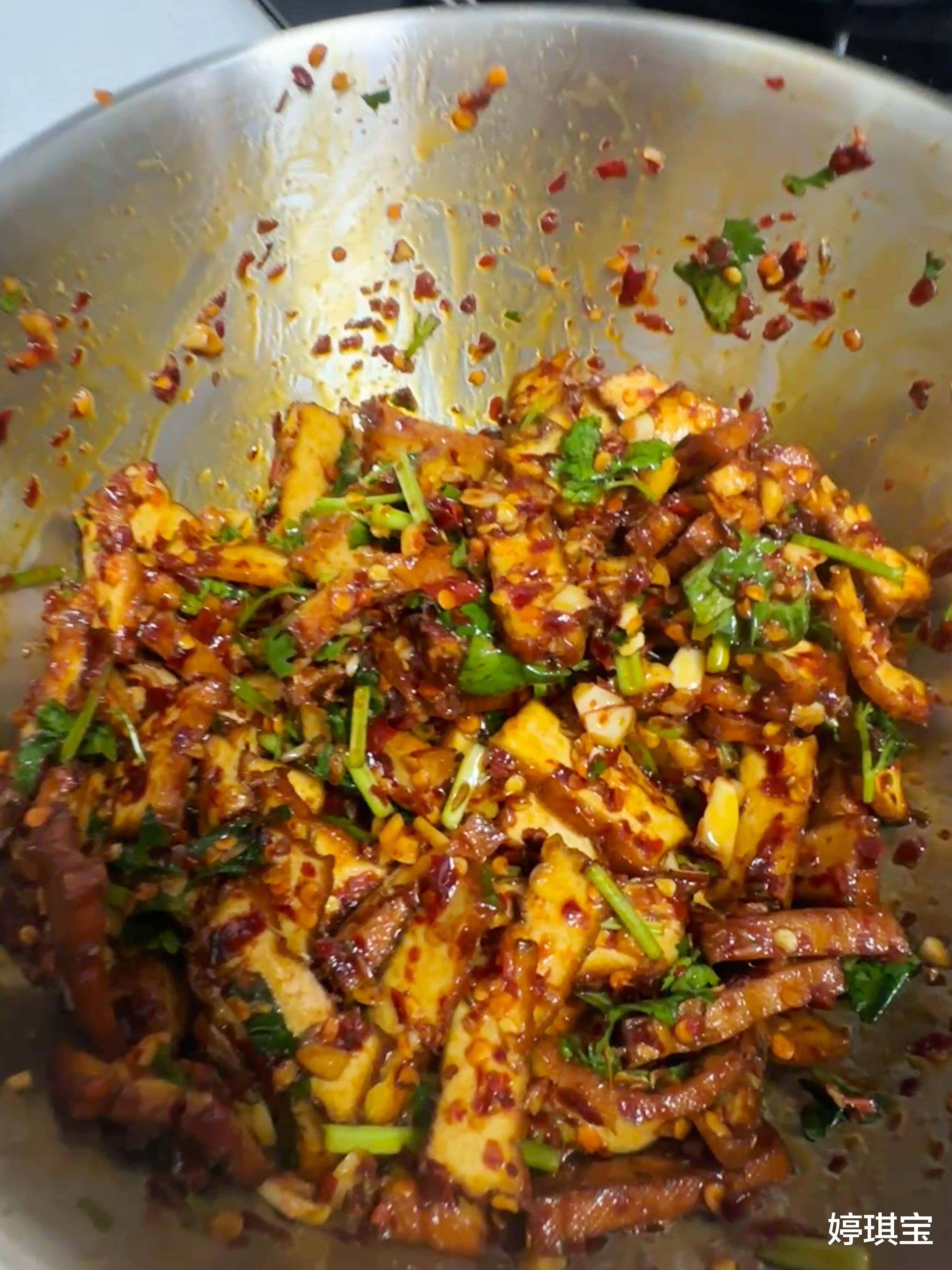 小贴士:隔夜的麻辣香干更入味,冷吃也别有风味。剩下的红油不要浪费,用来拌面又是一道美味!