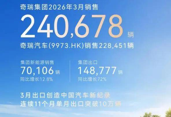 3月份,奇瑞汽车24万辆+的总销量中,新能源汽车销量达到16.1万辆,同比增长53.9%。这一数据体现了奇瑞集团对新能源行业的持续关注和战略布局。