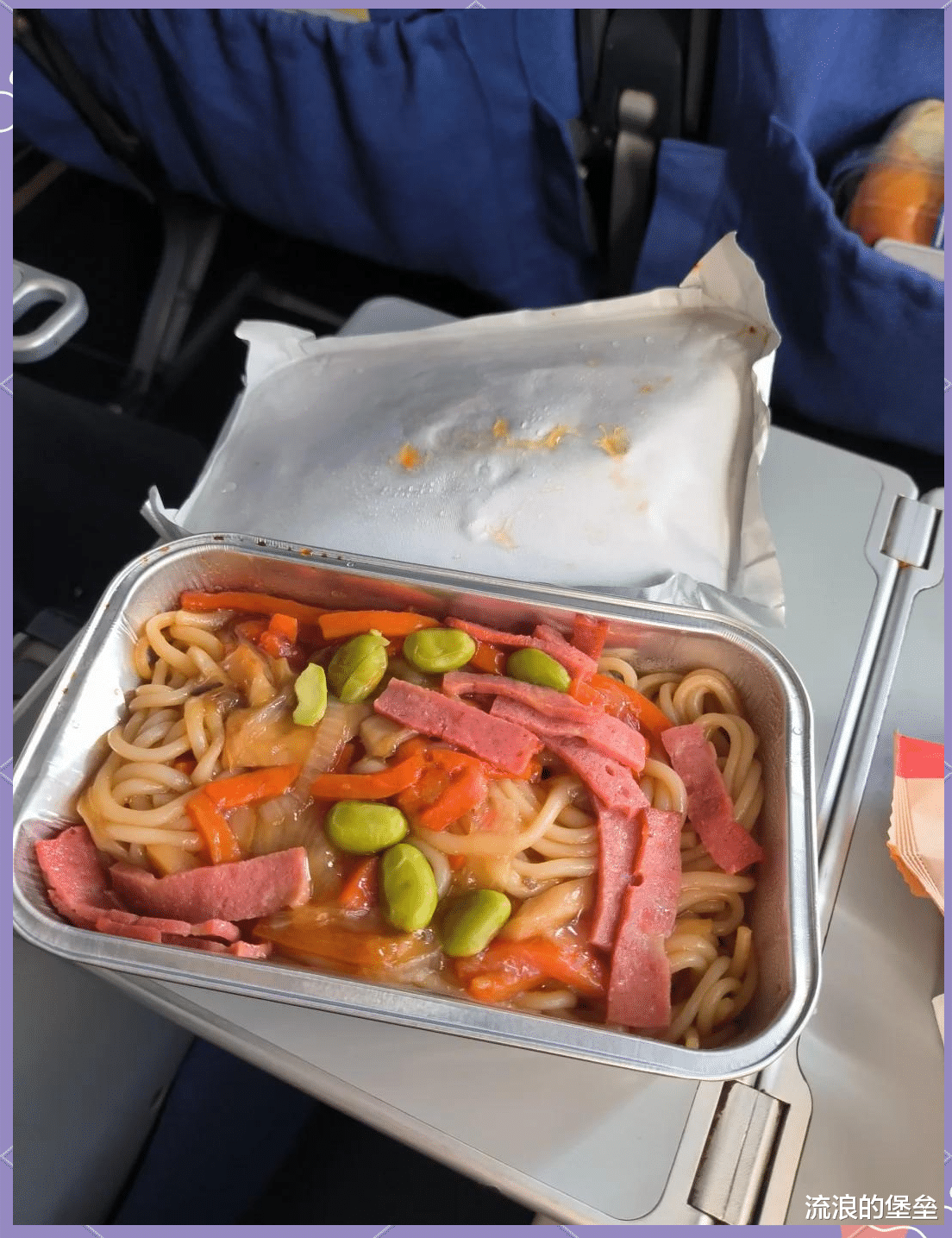 前往美国的高级牛马,品味到了来自美国的飞机餐,和我们想象的牛排不一样,飞机上是简单的“面条”,里面的配菜确实是很美国了,火腿、蔬菜+面条,看起来觉得也不是很饿,感觉还不如来一筷子牛排!