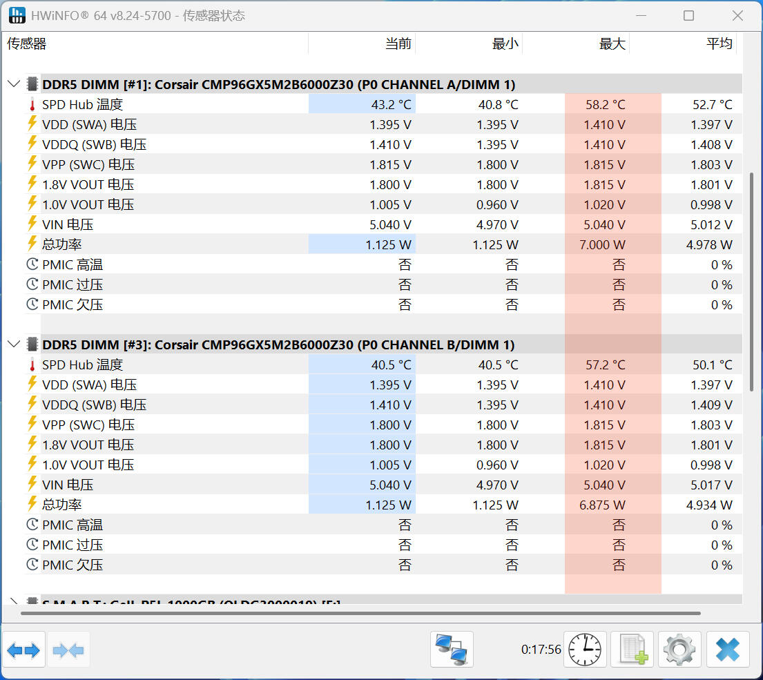 除了高颜值特性,统治者泰坦的铝制金属散热马甲还具有良好的导热性能,能够有效地将内存颗粒工作时产生的热量散发出去,保证内存在长时间高负载运行时也能保持稳定,避免过热降频。在满载压力测试时,统治者泰坦的最高温度只有58℃左右,散热性能可见一斑。