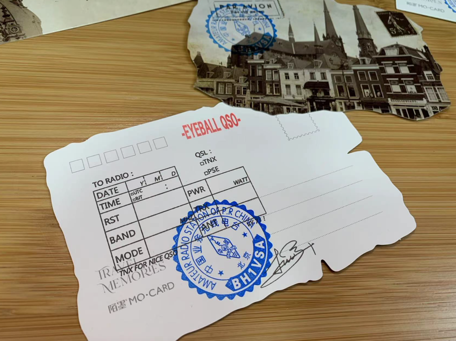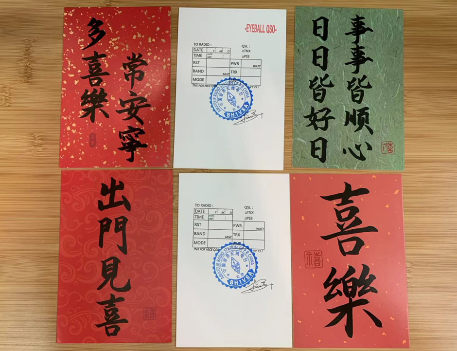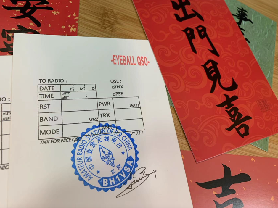 我们制作卡片用到了现成的印章,例如QSL表格直接用了“QSL印章”,直接盖到卡片上即可。同时盖了“呼号印章”和“签名印章”。当然,卡片要通过线下活动(例如俱乐部或协会的年会)交换,我们再盖上“眼球章”,也就是EYEBALL QSO。