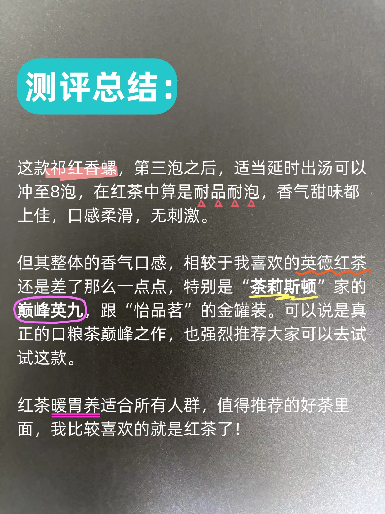 这款祁红香螺,第三泡之后,适当延时出汤可以冲至8泡,在红茶中算是耐品耐泡,香气甜味都上佳,口感柔滑,无刺激。