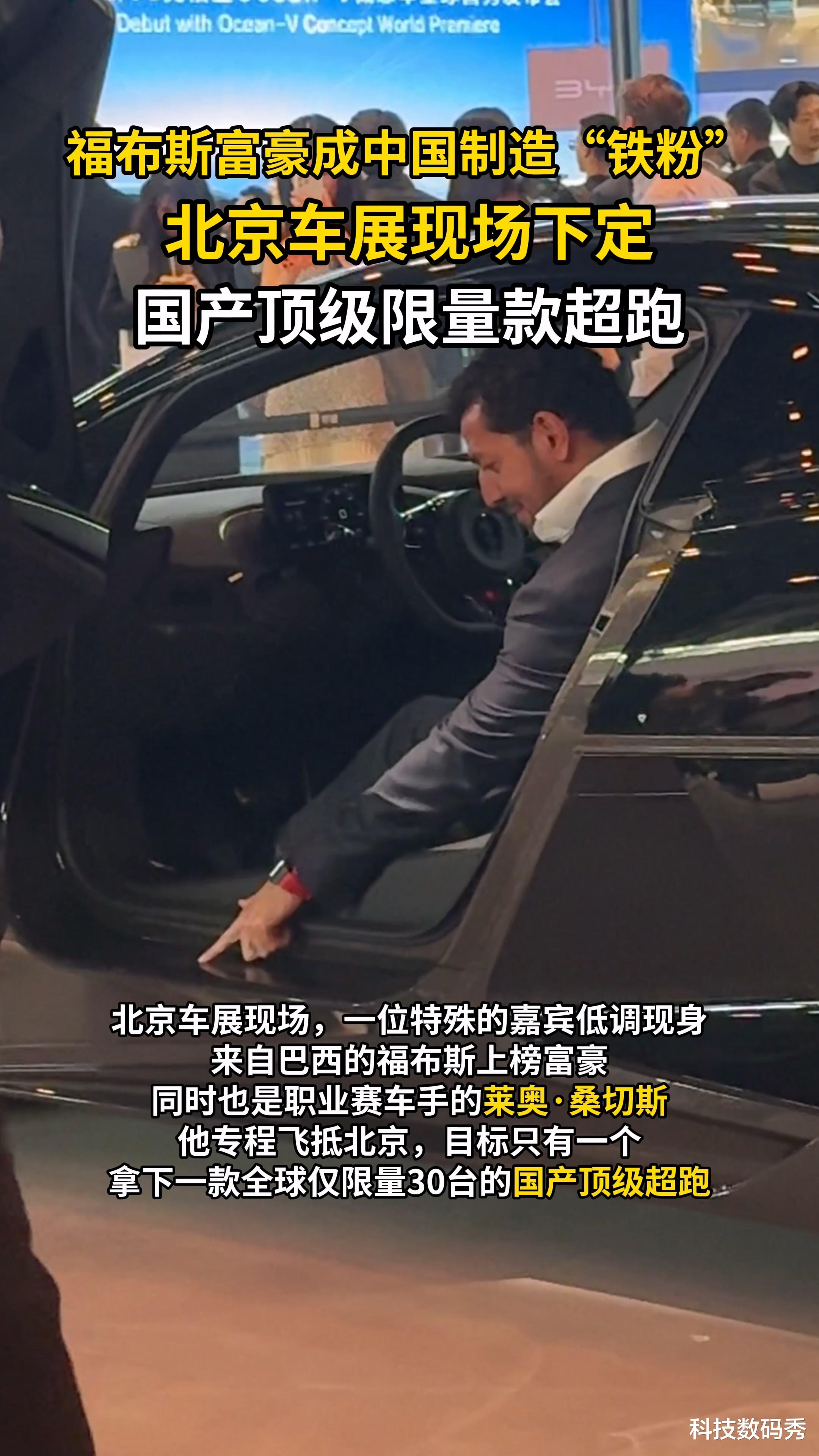 北京车展简直是“富豪收割机”啊, 刚刚结束的仰望发布会,直接把排面拉满!巴西顶级富豪兼赛车手桑切斯(Leão Sanchez),从20多位名流中脱颖而出,现场喜提全球限量30台的仰望U9 Xtreme!这车落地超2000万,全球仅此一台的“破晓时刻”涂装,深邃黑底撒上手工金粉,简直壕无人性!