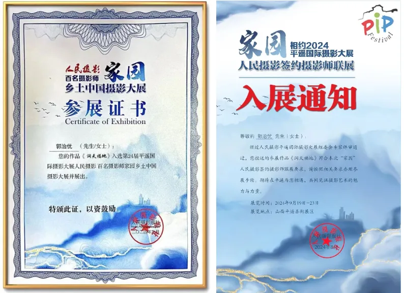 平遥国际摄影展人民摄影乡土中国摄影大展参展证书