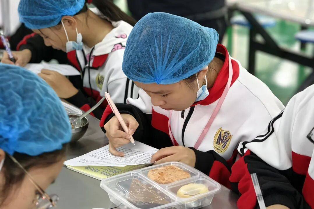 参观结束后,食堂还为同学们准备了惊喜——由面点师傅手工制作的无添加蛋糕,让大家现场品尝后厨的匠心手艺。当日午餐时间,学生代表们对菜品进行了实地品鉴,并认真填写调查问卷,从菜品口味、分量、种类搭配、环境卫生等方面提出了诸多宝贵意见,为食堂后续优化服务提供了重要参考。