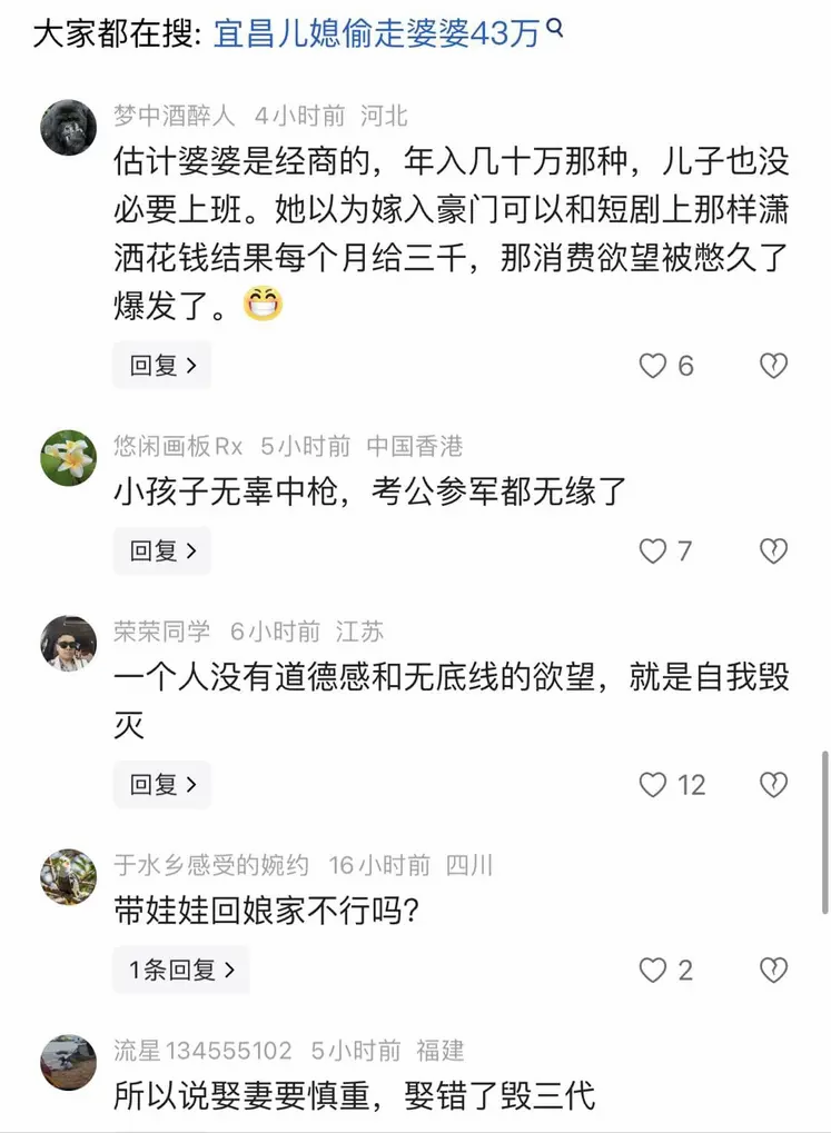 有网友说,实在是不能理解,有彩礼花,一个月婆婆还给3000元,这日子够可以了吧?还偷?
