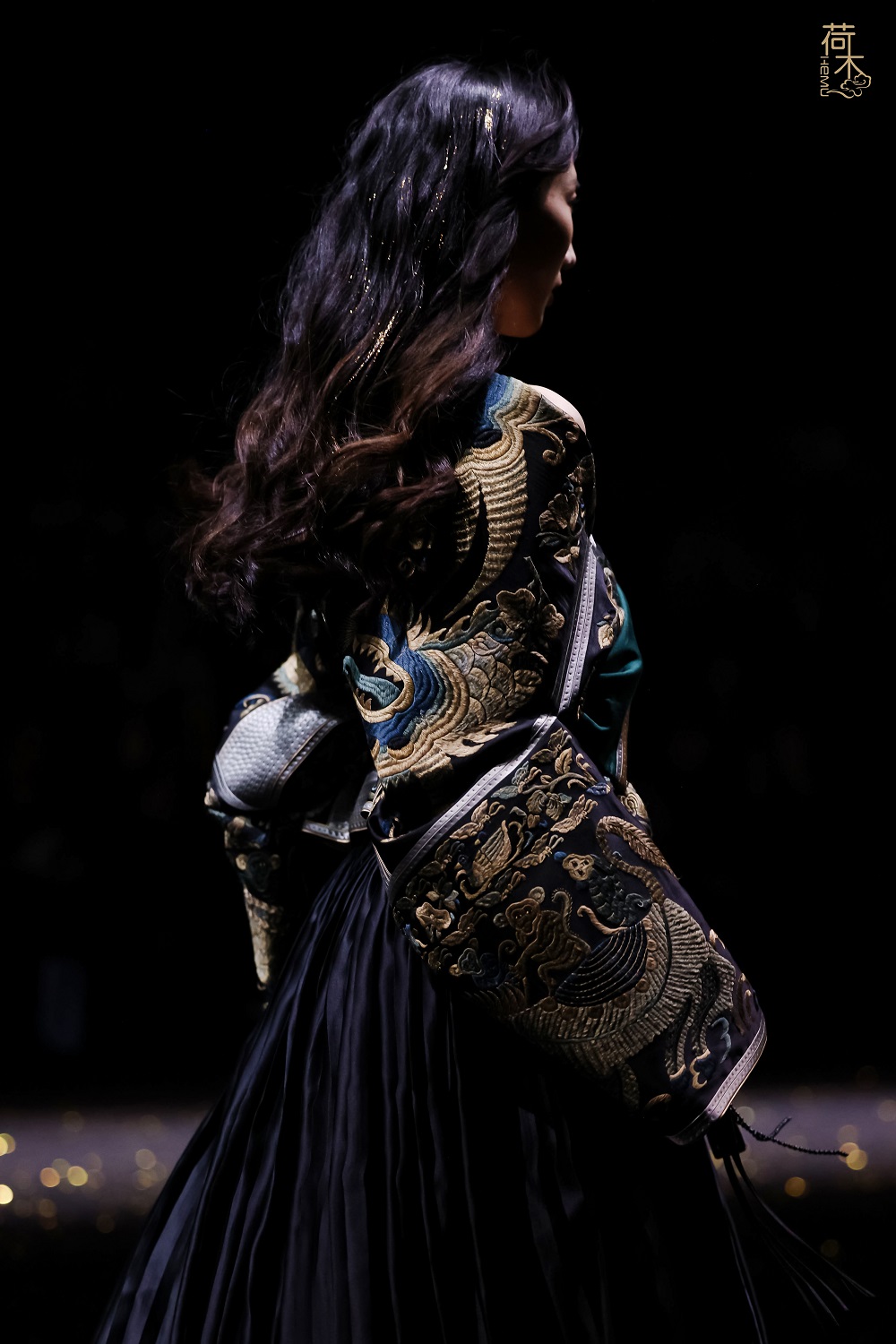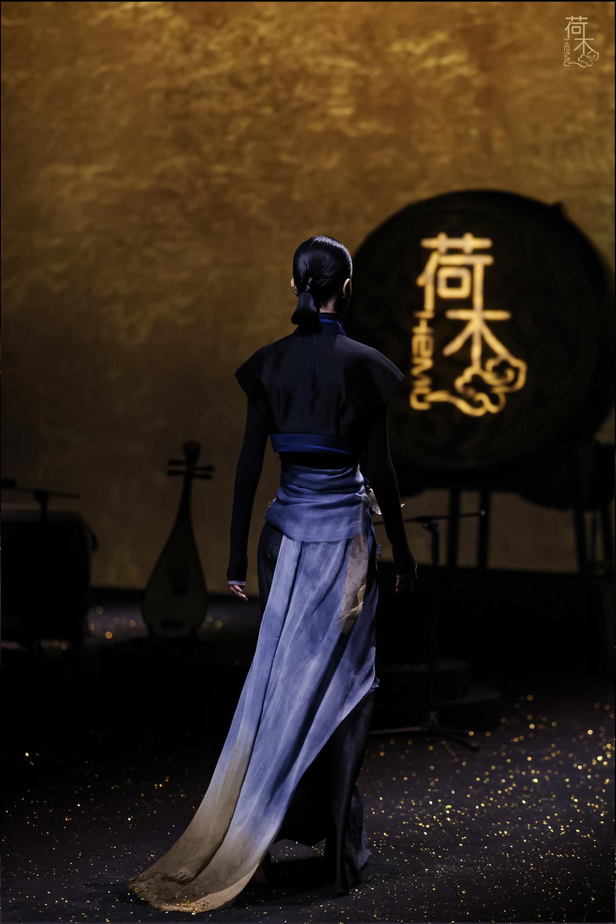 楚歌起,衣扬兮。 楚国自筚路蓝缕以启山林,到八百年楚风耀东方,岁月沉淀文脉悠长。楚辞的浪漫,青铜的雄浑,织绣的瑰丽,都留下了盛世的荣光。楚文化是东方美学中极具张力的篇章,而楚歌是楚文化中最激荡的精神回响,它是山河之阔,是离别之痛,是不屈之气,是宿命之美。荷木HEMU2026AW上海时装周「楚歌」 系列作品以楚文化为设计灵感,让荆楚的魂魄在霓裳之间重生。这是一场跨越时空的对话,是青铜器上饕餮纹与织物上凤鸟纹的共舞,是曲裾深衣与当代设计的融合,是楚辞的浪漫与时尚的对话,是楚歌长 风与当下精神的共鸣。