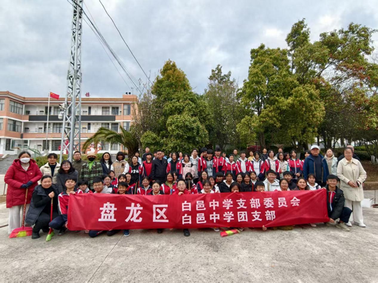 为传承雷锋精神,深化党、团、队一体化建设,3月16日傍晚,盘龙区白邑中学党支部组织开展“学习雷锋精神,争做时代先锋”主题实践活动。全体党员教师、共青团员及少先队员代表共同参与校园卫生大扫除,以实际行动美化校园环境。