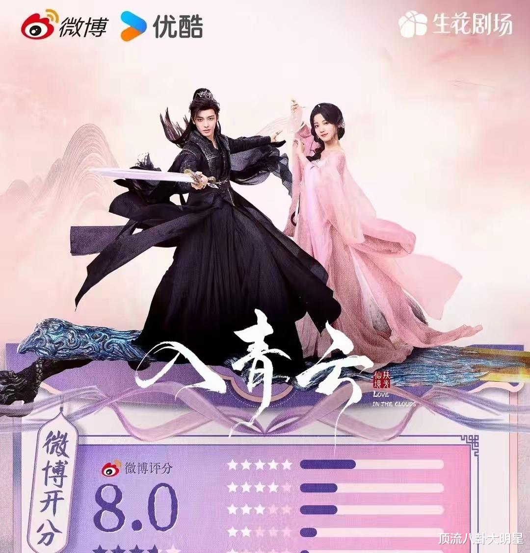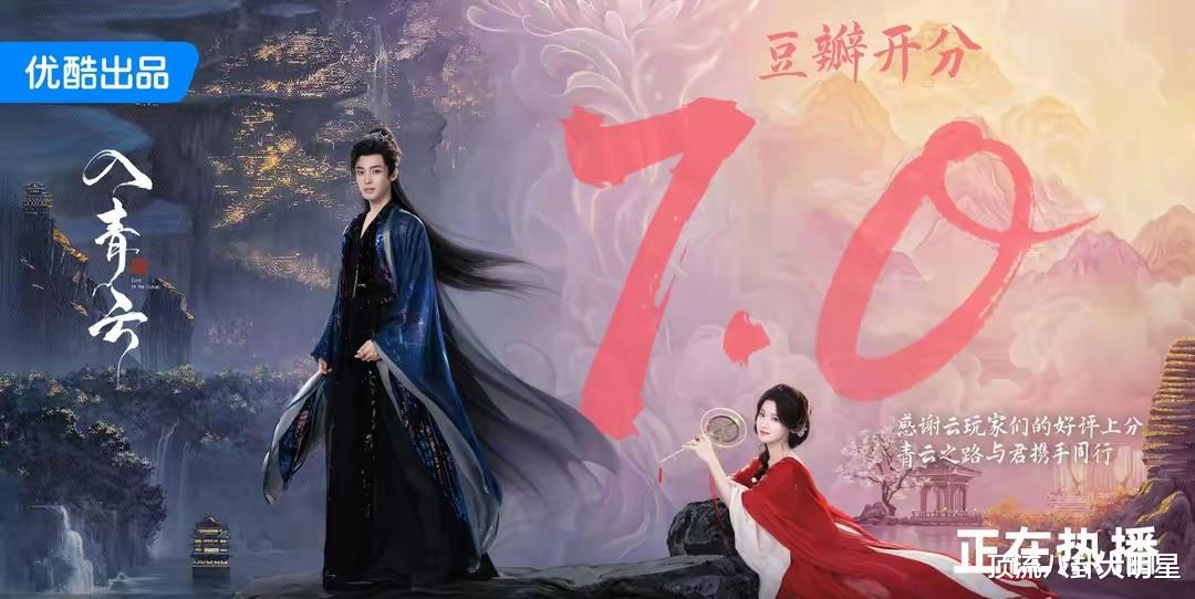 《入青云》以其“轻喜糖衣包裹的虐恋内核”成功出圈。该剧在优酷站内峰值达10014,蝉联优酷仙侠榜、爱情榜等10+榜单TOP1,累计播放量7.2亿。