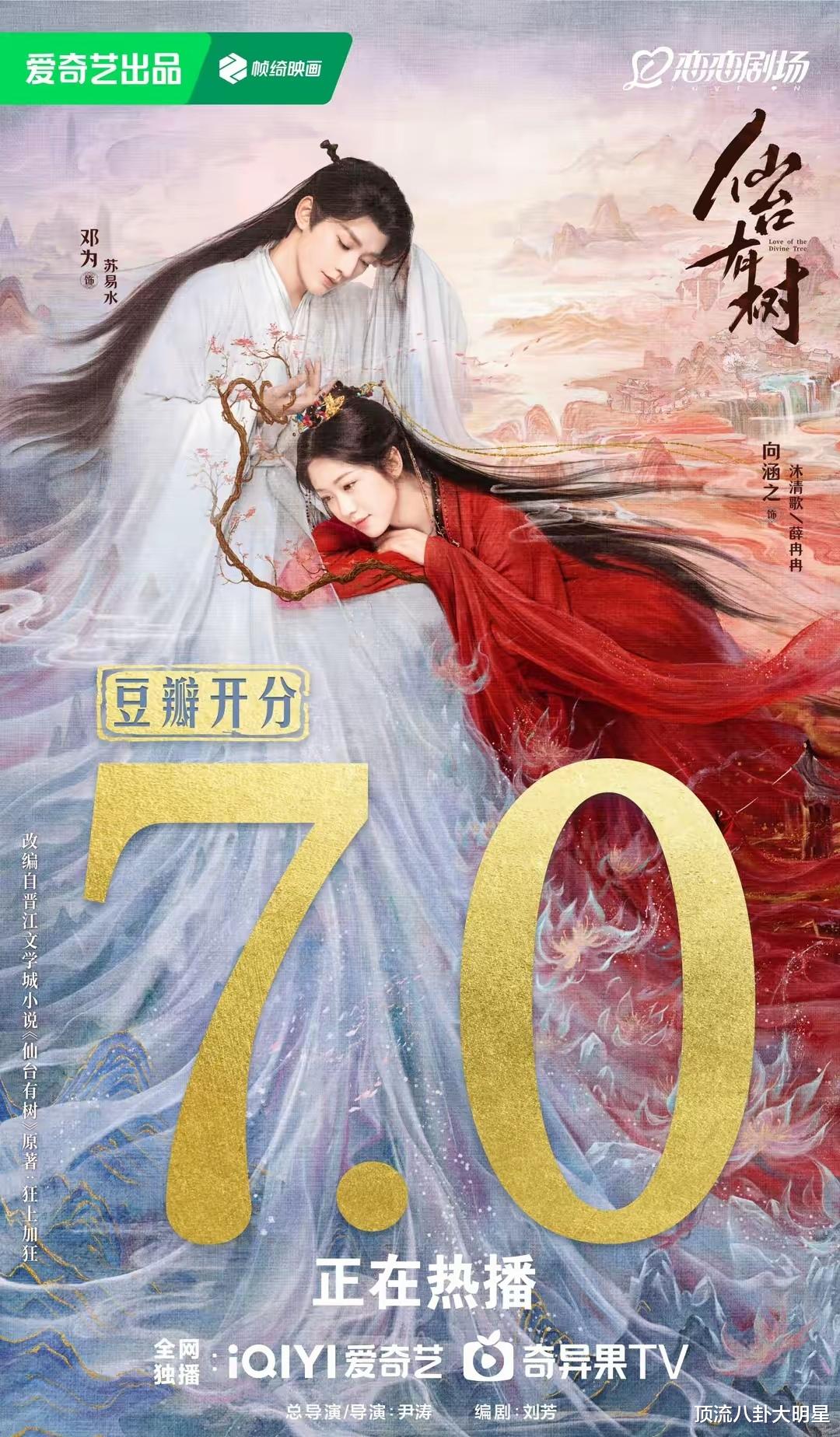 《仙台有树》把“全员摆烂不想飞升的咸鱼”理念搬进仙侠里,在爱奇艺站内热度峰值8500+,累计播放量8.4亿,豆瓣开分7.0,后期升至7.1分。