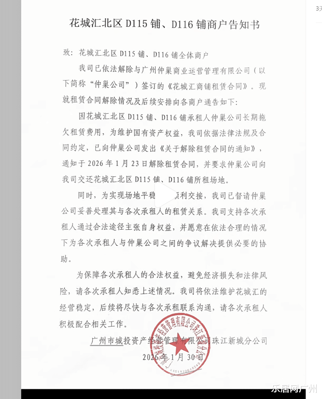 大家原本以为合同签到2028年很稳,结果大房东(广州城投)突然通知解约,收回铺位。