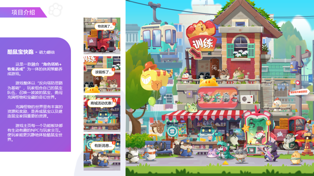 首先简单介绍一下我们公司。武汉奇力造物成立于2024年,是一家专注于休闲游戏与小游戏研发的创新企业。我们的核心团队成员均来自腾讯、网易、完美世界等头部游戏公司,平均从业年限超8年,具备丰富的游戏研发、运营及IP打造经验。《酷鼠宝快跑》作为我们的首发项目,是一款融合角色塔防与收集养成的作品,所有角色均为原创设计,未来我们计划围绕核心形象“酷鼠宝”打造完整IP宇宙,覆盖潮玩、动画短片等衍生内容,不局限于游戏本身。
