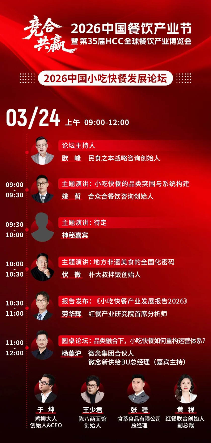 2026中国小吃快餐发展论坛受邀嘉宾汇聚行业资深力量,既有深耕领域多年的领军者,也有擅长实战突破的资深从业者,更有具备前沿视野的行业专家。他们将为活动带来高质量的分享与交流。
