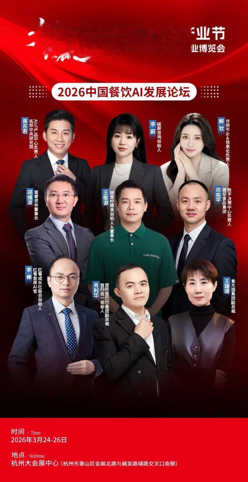 2026中国餐饮AI发展论坛受邀嘉宾集结AI技术与餐饮行业应用的跨界力量。既有原互联网巨头AI技术领军者,也有“餐饮+AI”应用先行者。他们将立足AIGC全域增长、智能设备应用及经营逻辑重塑,带来AI技术穿透前厅后厨、重构人货场的前沿实战与落地路径。